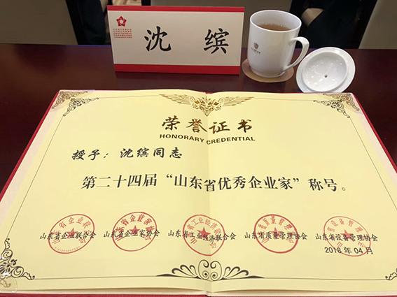公司董事長被授予“山東省優(yōu)秀企業(yè)家”榮譽(yù)稱號
