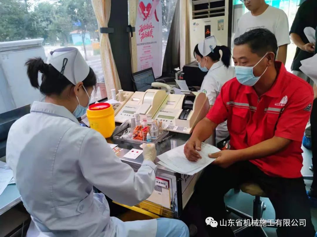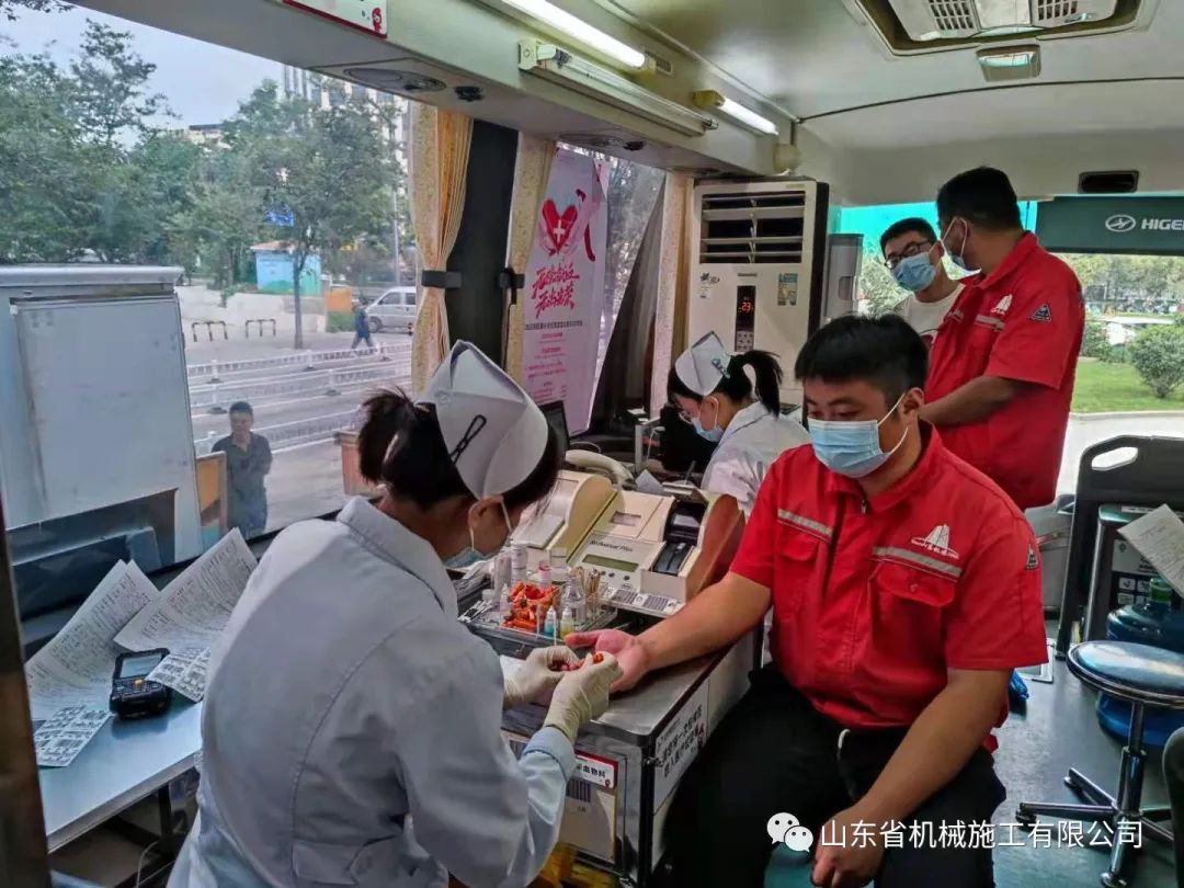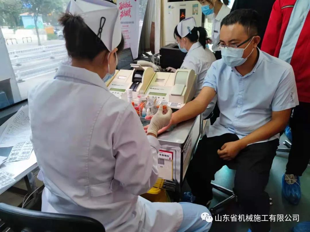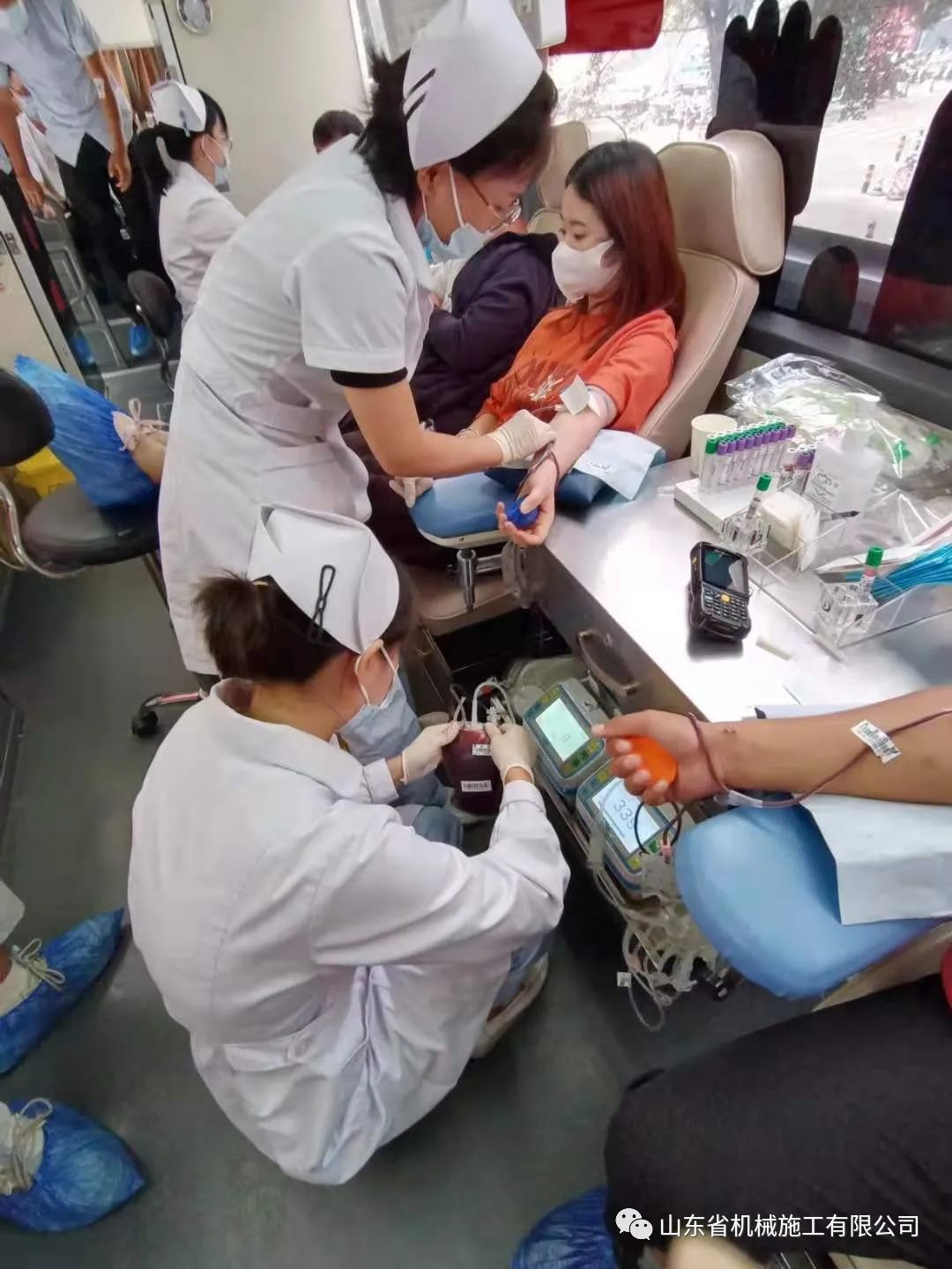 因受疫情及學(xué)生放假影響,省血液中心血庫庫存告急,在得知該情況后,山東機(jī)施立即動員職工參加無償獻(xiàn)血活動。作為常年參加公益、慈善活動的董事長沈繽第一個報名,在沈董的大愛精神引導(dǎo)下員工們也紛紛報名參加。省血液中心對于公司員工的善舉表示衷心的感謝,并于8月2 8日安排采血車來到公司上門采血。