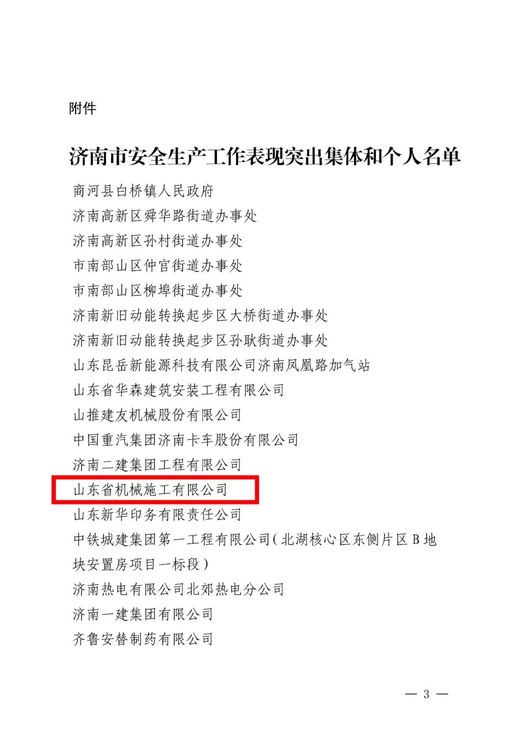 近日,山東省機(jī)械施工有限公司被濟(jì)南市安全生產(chǎn)委員會(huì)評(píng)選為2022年度安全生產(chǎn)工作表現(xiàn)突出集體。這是公司繼榮獲濟(jì)南市防汛管理先進(jìn)單位后,再次獲得市安委會(huì)肯定,本次獲獎(jiǎng)槐蔭區(qū)僅兩家單位,公司位列其一。