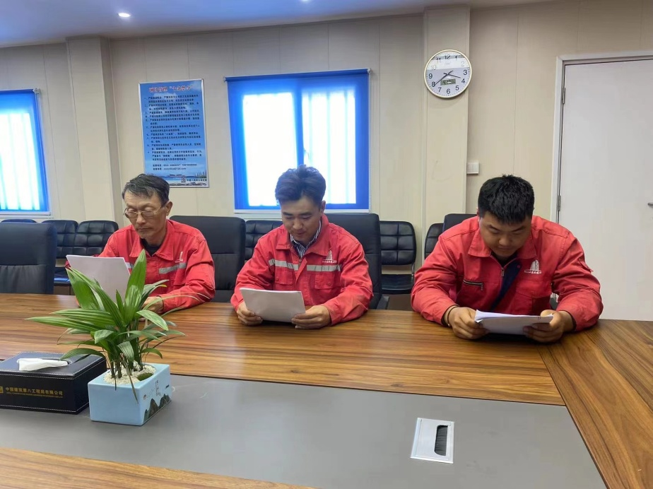 巖土分公司青島上合廣場指揮部學習傳達生產會精神。