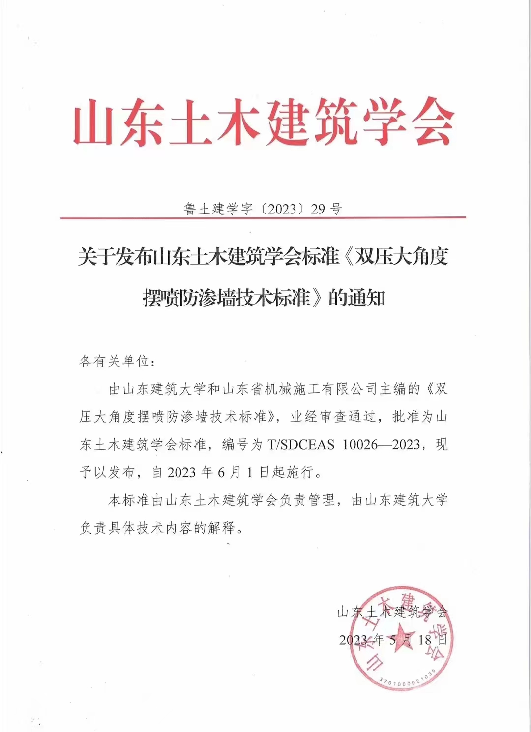 5月18日,山東省機(jī)械施工有限公司與山東建筑大學(xué)聯(lián)合主編的兩項技術(shù)標(biāo)準(zhǔn),被批準(zhǔn)為省團(tuán)體標(biāo)準(zhǔn)。