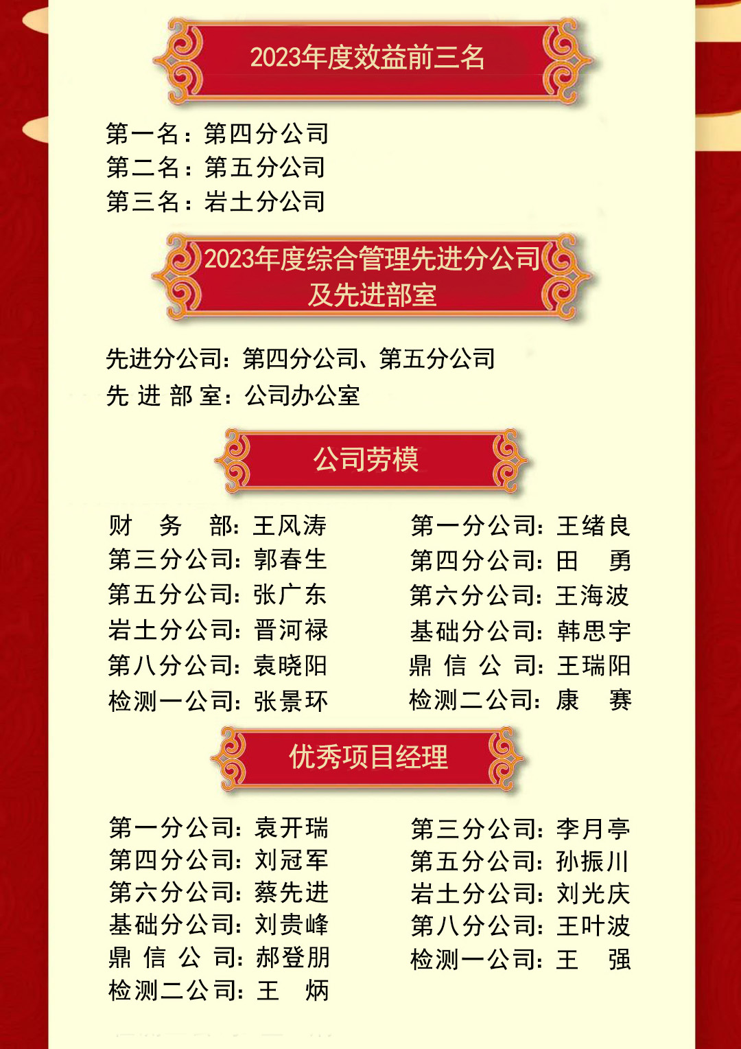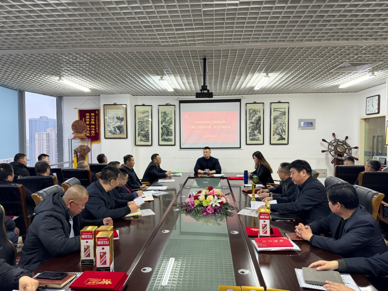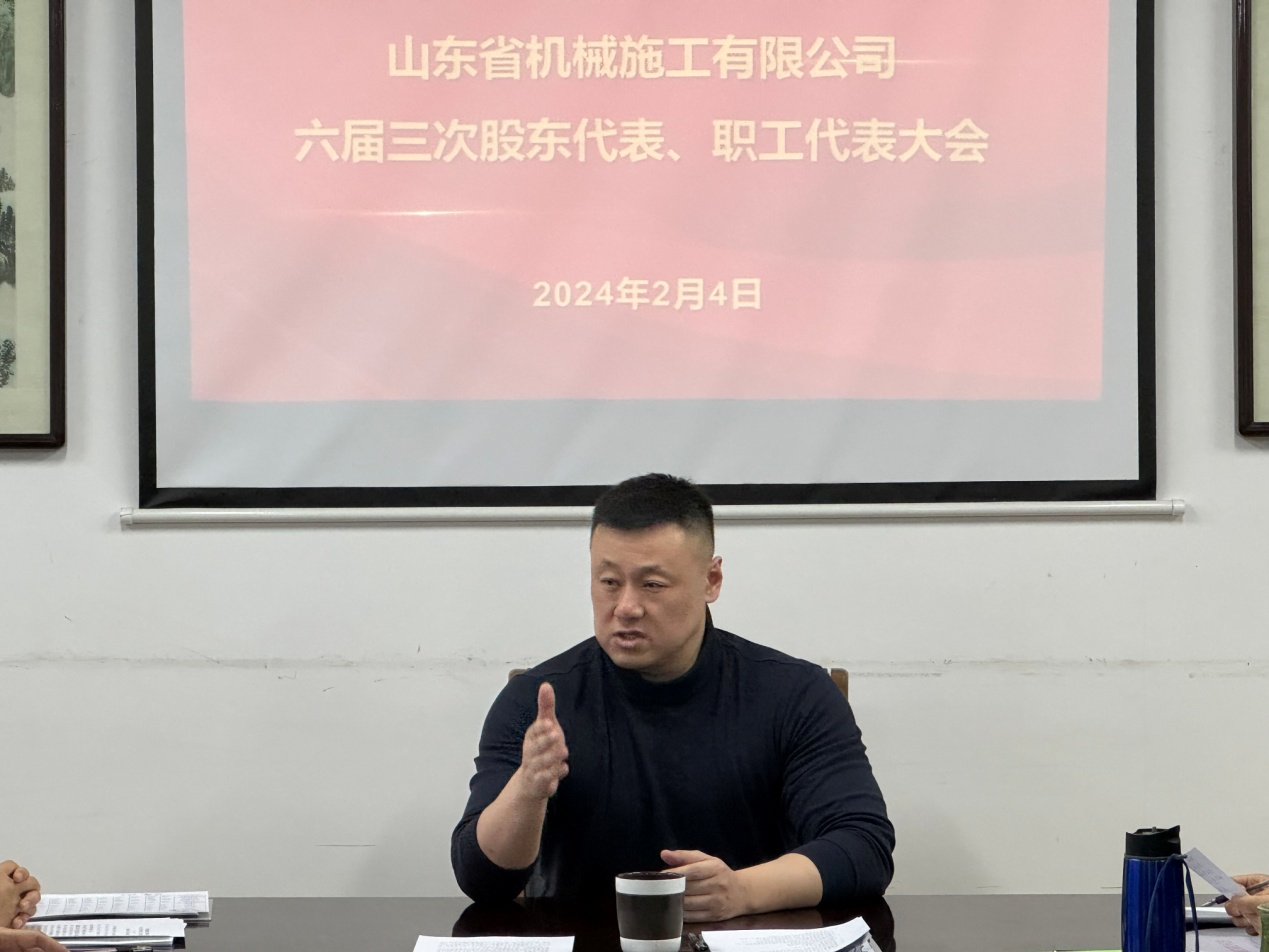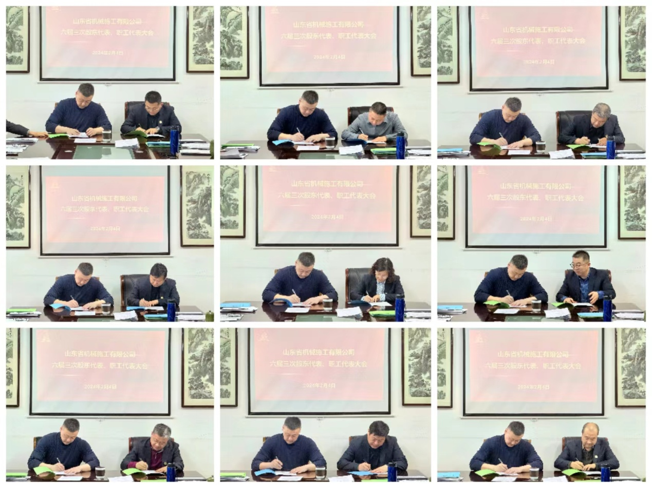 2024年2月4日,山東省機械施工有限公司第六屆三次股東代表、職工代表大會在公司會議室召開。公司股東代表、職工代表、先模代表近40余人參會。會議審議通過了董事長行政工作報告、監(jiān)事報告、財務(wù)預決算報告等事項;會上沈繽董事長與各承包人簽訂2024年承包合同;表彰了2023年度先進單位和個人;動員全體職工在新的一年統(tǒng)一思想、堅定信心、再創(chuàng)佳績,為努力開創(chuàng)山東機施各項工作新局面做出更大的貢獻。