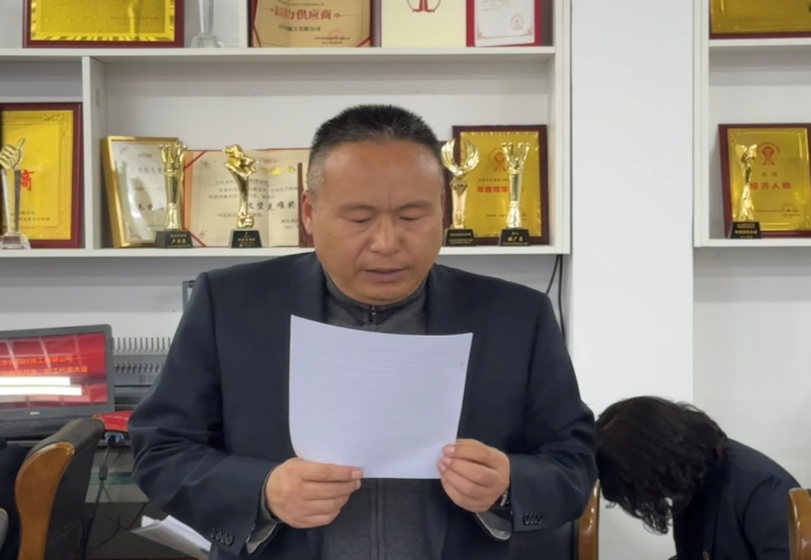 徐占全財務(wù)總監(jiān)作財務(wù)預決算報告、宣讀2023年度利潤分配方案、宣讀2023年承包考核兌現(xiàn)決定