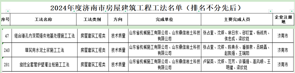 山東省機械施工有限公司3項工法獲評 “濟南市房屋建筑工程工法”